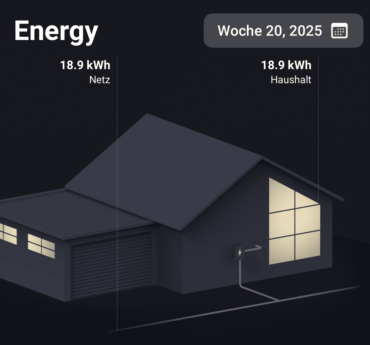 Auf den ersten Blick innerhalb des Tabs fällt einem zunächst ein Haus mit einer Animation ins Auge, die zudem nicht nur den Gesamtverbrauch des Stroms anzeigt, sondern auch die Anzahl an kWh, die man aus unterschiedlichen Stellen bezogen hat.