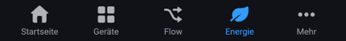 Innerhalb der App ist der Homey Energy Tab leicht auffindbar. Hierbei lässt sich Homey Energy ganz bequem über einen Eintrag in der Menüleiste am unteren Bildschirmrand erreichen. In der Web-App ist Homey-Energy leider noch nicht verfügbar.